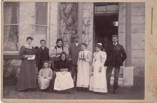 Joseph Arnison and his wife Elizabeth are in the middle, with other family members and staff