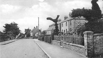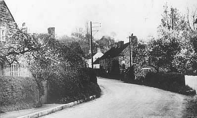 At the end of the road is seen the small creeper-clad cottage which once stood on what is now the eastern corner of the village green.