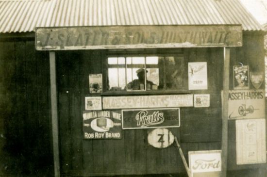 Back yard at Oak Lea shows the time when they brought in the local steam traction engine (which was used to operate threshing machines) to drive the saw for log cutting. Back right is John K. Slater, centre back is William Thomas Slater (with moustache) and front left Owen Kendrew Slater, the latter two were the youngest of three sons all of whom learned the trade under their father.