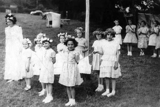 Maypole dancers. From left: Mary Wain, Maureen Drinkhill, Eunice Thompson, Bunty Oxtoby, Joyce Pinder, Cicely Hutchinson, Frances Taylor, Grace Garbutt, Jean Drinkhill,
